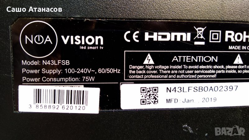NOA VISION N43LFSB със счупена матрица ,MSD6A348-T8C2 ,6870C-0532A ,K430WDC2 ,K430WDC1 A3 2017-8-25 → Обява 30086675