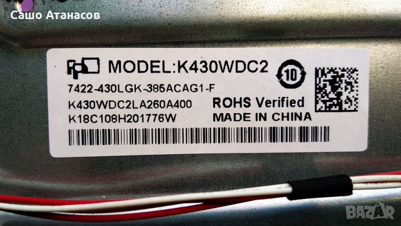 Back light LED: K430WDC1 A3 2017-8-25 / 4708-K43WDC-A3113N11 / K430WDC118B207 - 8x9лв./броя