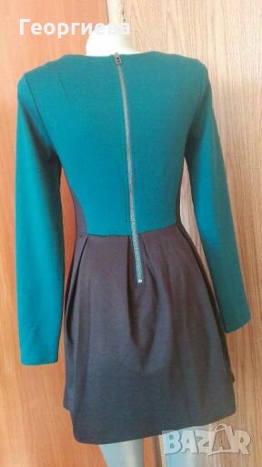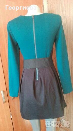 Плътна еластична рокля за спортно елегантна визия.В отлично стстояние е - без следи от употреба!Цветовете са по-наситени от видното на снимките.Синьо-зеления цвят е по-тъмен.