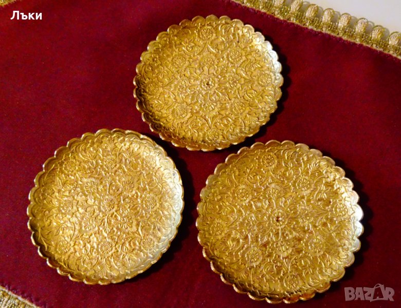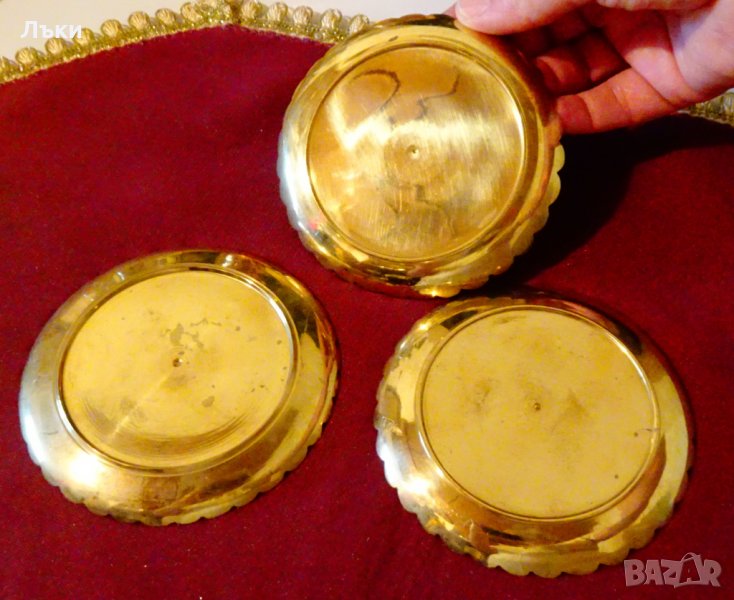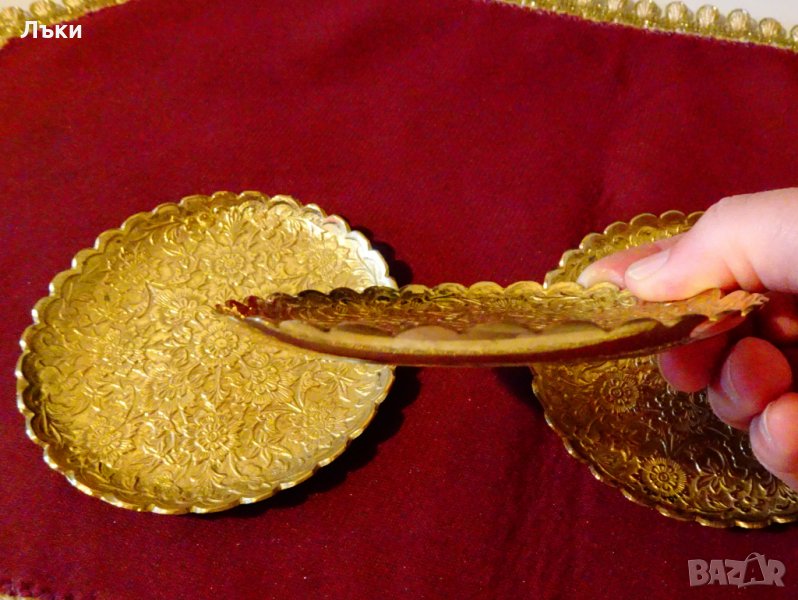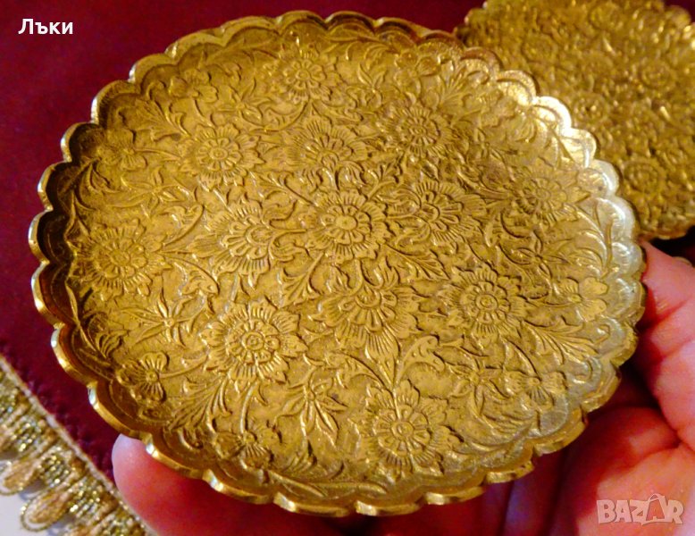 свещник,майсторска ръчна изработка с великолепни релефни цветя и орнаменти.Диаметър 10.5 см.,височина 1 см.Тегло на всяка 100 гр.Налични 4 броя,цена 8 лв.,за брой.