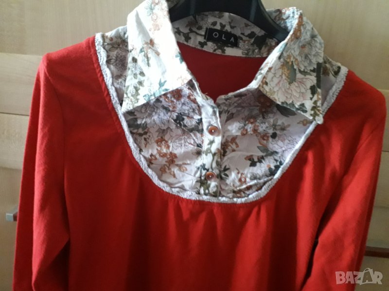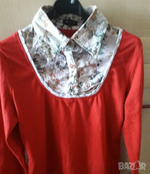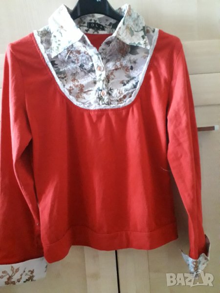 Дамска памучна червена блуза с платка → Обява 30105675