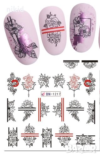 BN- 1217 червен черен контур цветя татос ваденки водни стикери слайдери за нокти маникюр декорация, снимка 1 - Продукти за маникюр - 30110933 BN- 1217 червен черен контур цветя татос ваденки водни стикери слайдери за нокти маникюр декорация, снимка 2 - Продукти за маникюр - 30110933 1/2