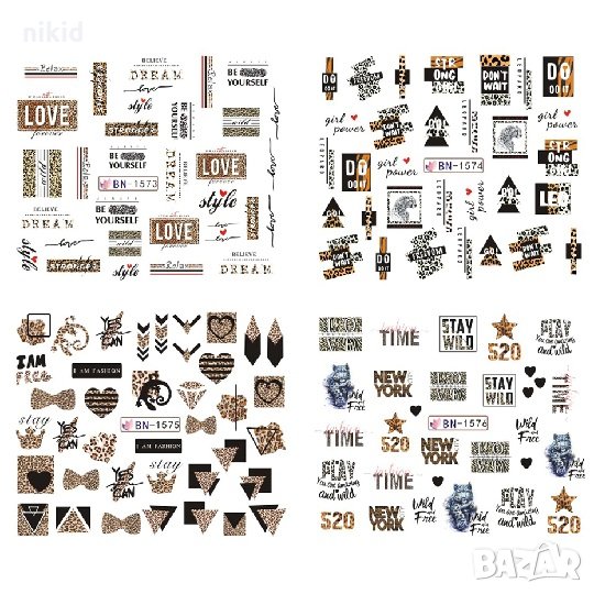 лист 12 в 1 Леопард шарки Гепард слайдер татос ваденки водни стикери нокти маникюр → Обява 30110977