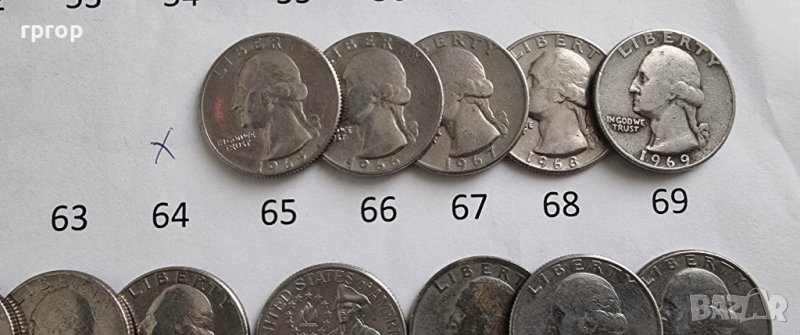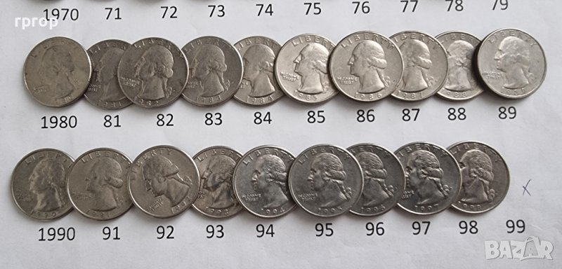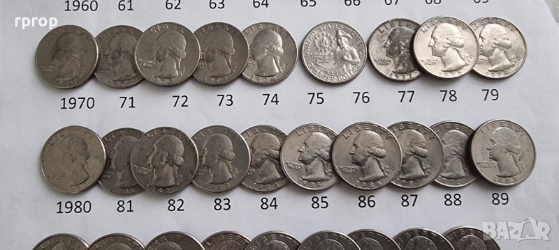 Монети. САЩ. 1/4 Американски долари . Quarter . Пълен комплект. 33 бройки. От 1965 до 1998 г. вкл.