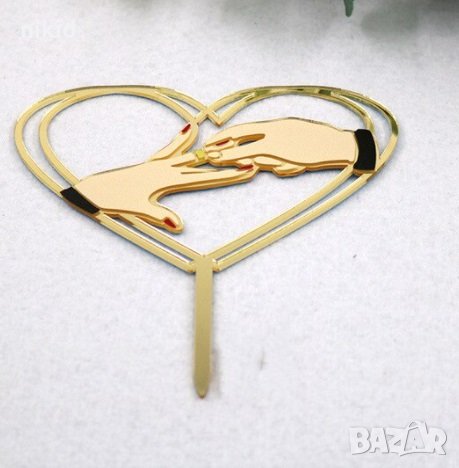 Ръце сватбена халка халки в златно сърце пластмасов топер за торта Сватбен сватба Годеж → Обява 30126664