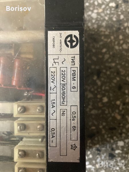 Моторно реле за време РВМ- завод ИМПУЛС Габрово. Релето се захранва с променлив ток и служи за включване и изключване на електрически вериги, работещи с променлив или постоянен ток. След изтичане на предварително зададения интервал от време. Състои се от следните основни възли :