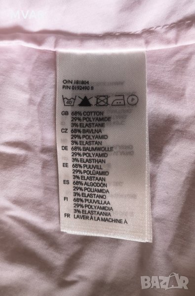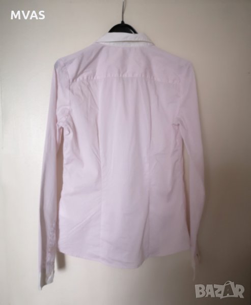 Нова риза на H&M. 36 S размер. Светло розова, реверът и краят на ръкавите е бял. Не е къса. Моделът е втален, седи по тялото. Без забележки, не е обличана, с резервни копчета.