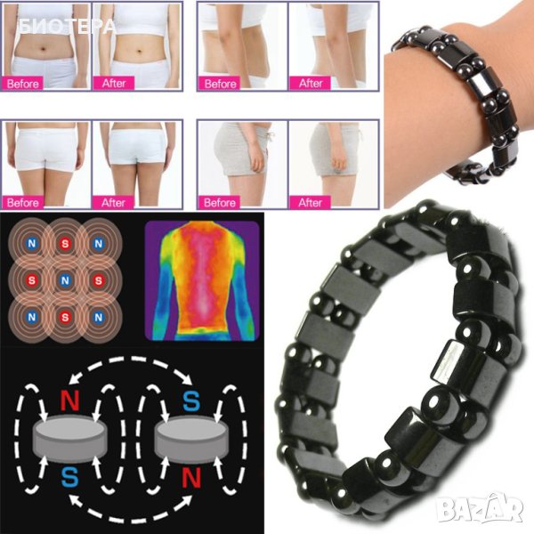 Еластична магнитна гривна за отслабване.Естествен камък хематит. → Обява 30139870