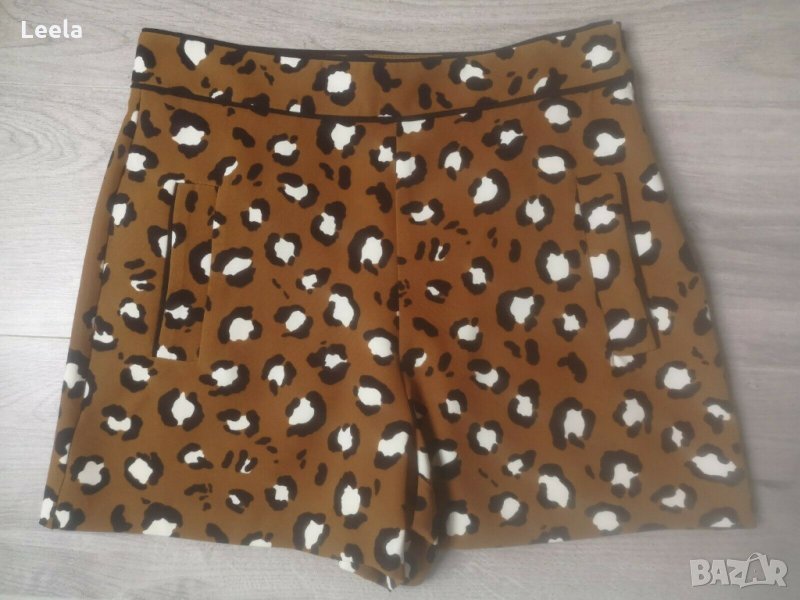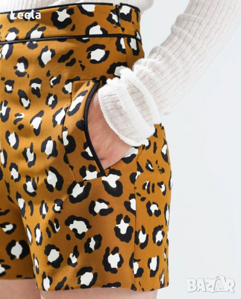 Къси панталони Zara с леопардов прит, висока талия и скрит страничен цип.
