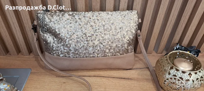 Страхотна кокетна блестяща чантичка.Без забележки.Размери ш. 27 см/в.18 см -15лв раница чисто нова,от корк.Много здрава.цена 55 лв