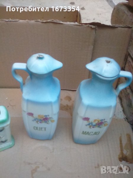 Продавам Оливник,Оцетник в състоянието което са ,търпят ремонт (поправка)мога да поправя капачките на оливника и оцетника но ги пускам така за да се види въстоянието в което са,Цената е за двете 25.00лева