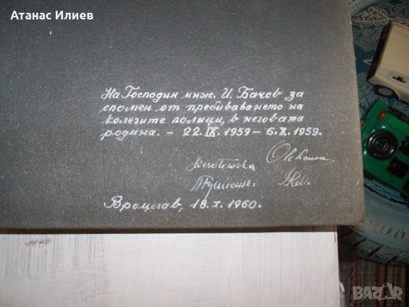 Уникален луксозен фотоалбум с висококачествени фотографии от времето на соца. Албума съдържа 116 фотографии от различни градове и местности в България. Първоначално е съдържал 128 фотографии, но 12 за съжаление липсват. Фотографиите са заснети през 1959г. Албума е бил подарък за инж. И. Бачев от колегите му поляци, за спомен от пребиваването им в България. Албума е с кожени корици и с размери 46х30 см.