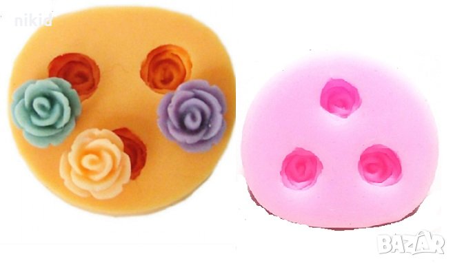 3 миниатюрни розички силиконов молд форма декорация украса фондан торта шоколад смола → Обява 30148354