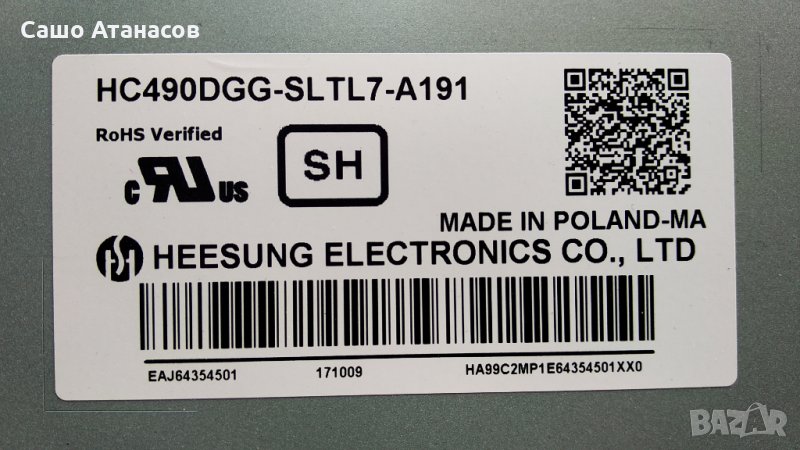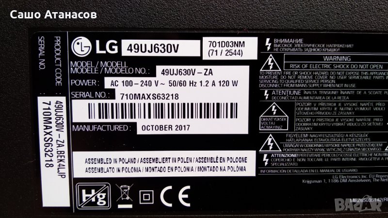 LG 49UJ630V със счупена матрица ,EAX67189201(1.6) ,EAX67133404(1.0) ,TWCM-K305D ,HC490DGG-SLTL7-A191 → Обява 30161135