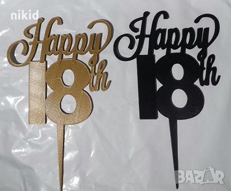 Happy 18th години черен златен бял пластмасов топер украса за торта рожден ден, снимка 1 - Други - 30161137 Happy 18th години черен златен бял пластмасов топер украса за торта рожден ден, снимка 2 - Други - 30161137 1/2