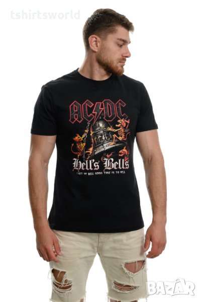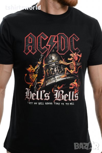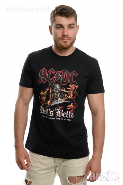 Нова мъжка тениска с дигитален печат на музикалната група AC/DC - HELL'S BELLS