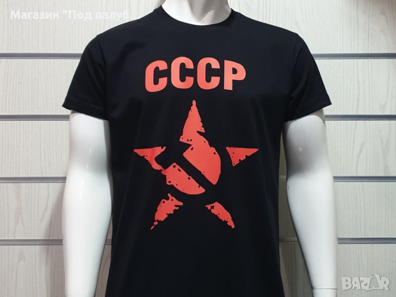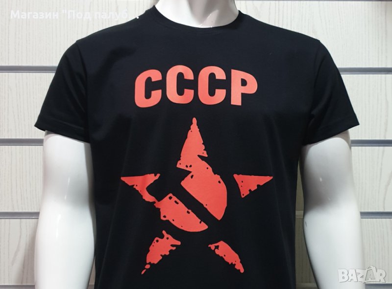 Страхотна нова мъжка тениска в черен цвят със символичен трансферен печат на СССР звезда, Русия. Тениската е изработена в България под марката PRINTEX от висококачествен 100% пениран памук на 170 гр./м², който запазва цялостта на материята и наситеността на цветовете дълго време. С удобна кройка, тениската е свободна и позволява максимален комфорт при носене. Професионално изработен висококачествен трансферен печат, устойчив на пране с години. Тениската може да се пере при температура до 40 градуса. Спокойно можем да гарантираме за качеството на изработката и ярките цветове на дизайна.