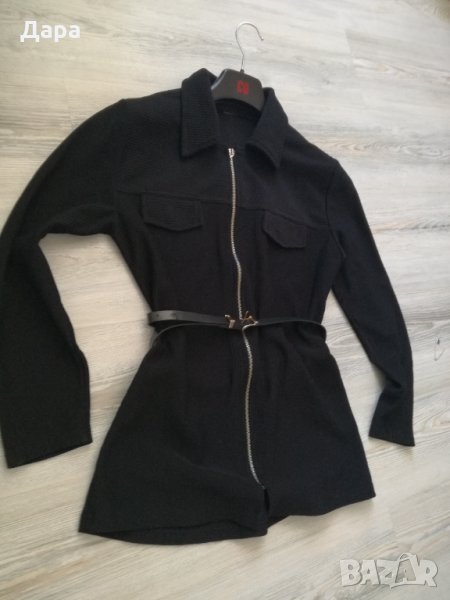 Дамско черно сако с цип. Много приятна, немачкаща материя, плътно. Без забележки, в отлично състояние. Може да се носи с или без колан.