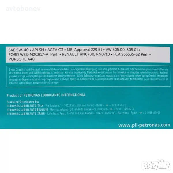 Двигателно масло PETRONAS SYNTIUM 3000AV 5W40