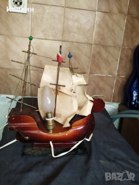 стара настолна лампа-кораб,авторска изработка.висока е 29см,широка 29см,състояние видно на снимките,внос от франция.