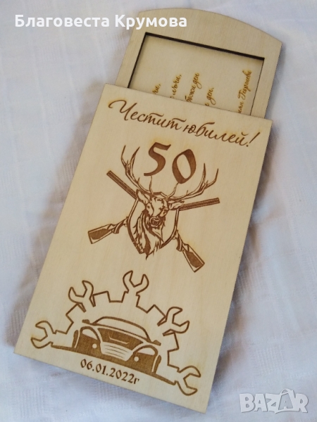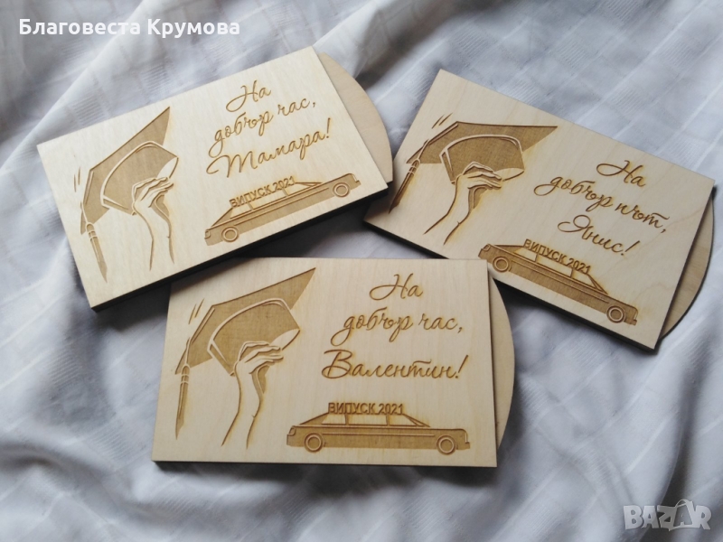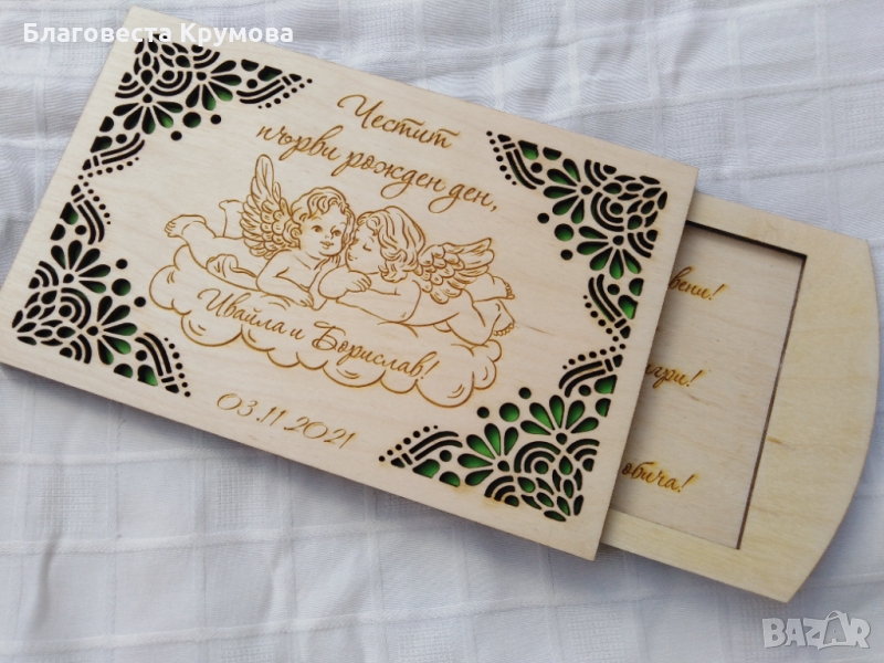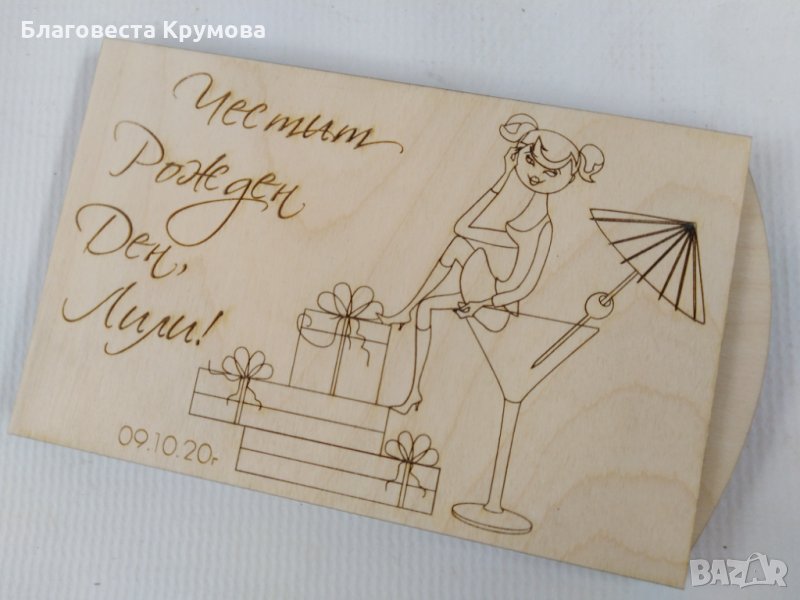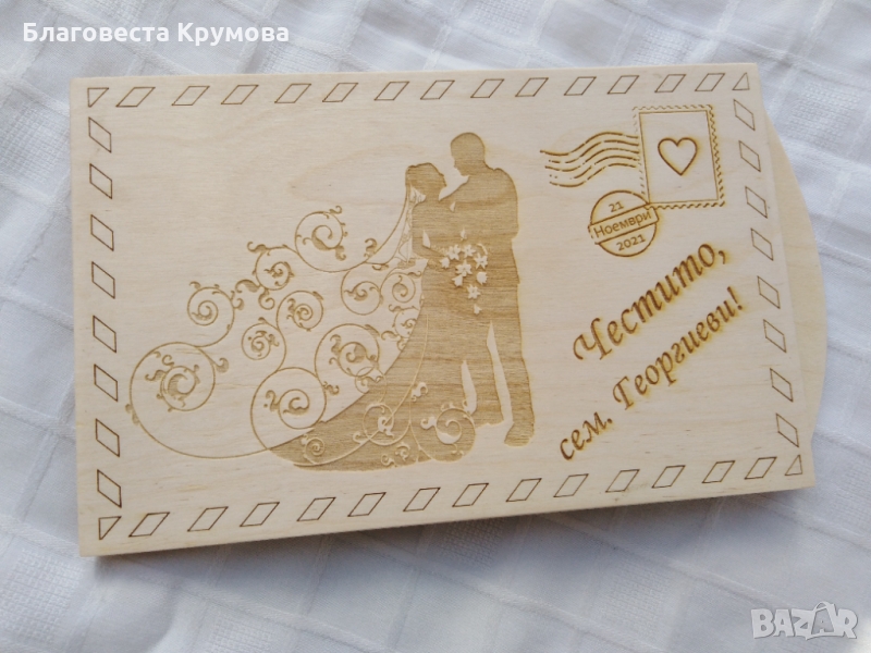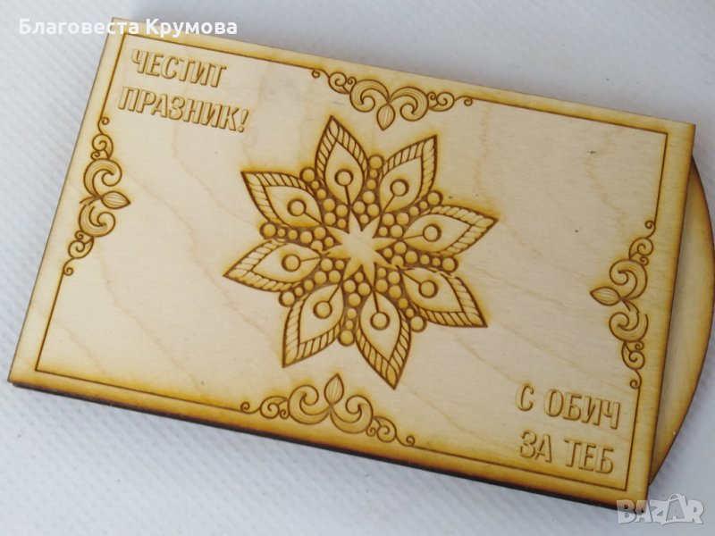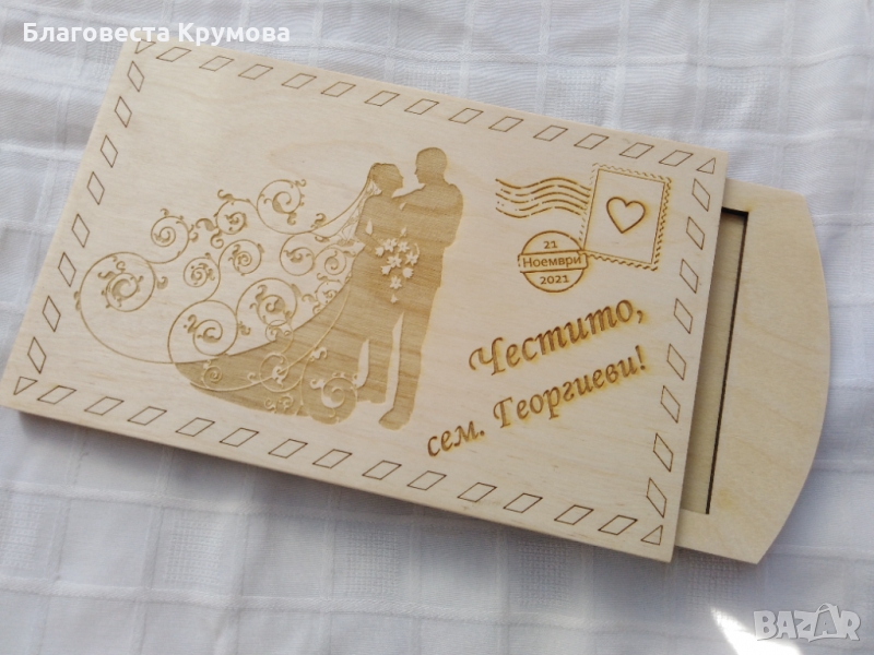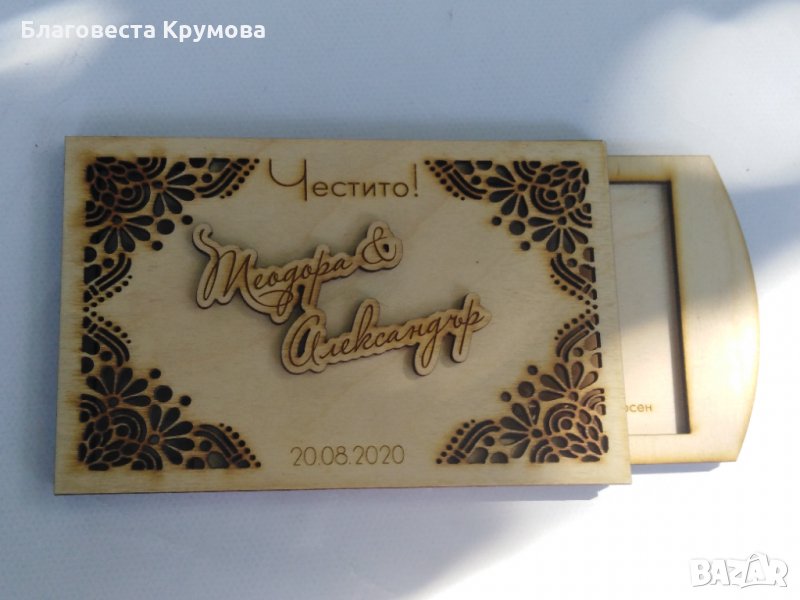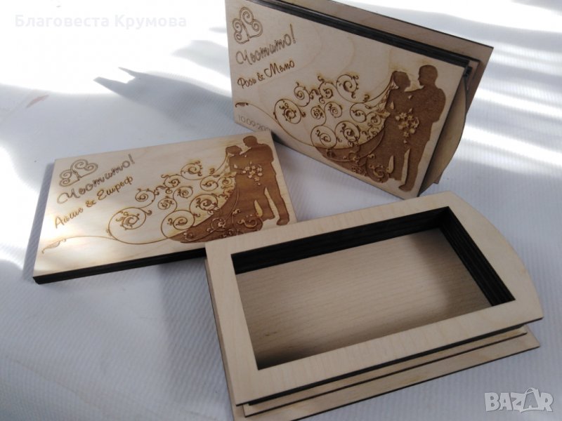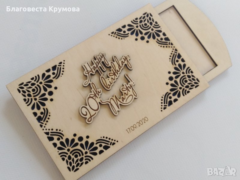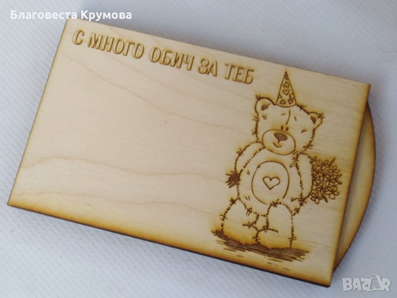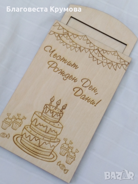 Дървен "плик" за пари, подходящ за всякакви поводи - рожден ден, имен ден, кръщене, сватба, бал...