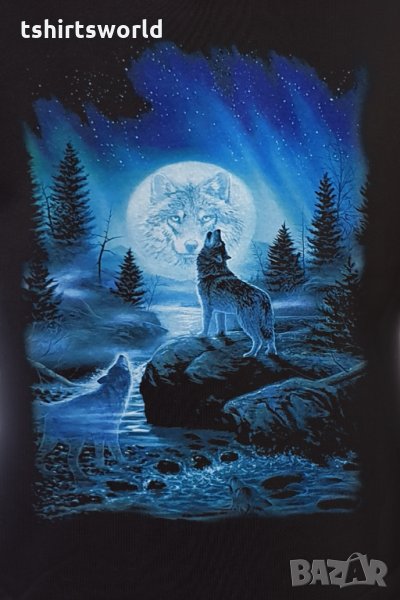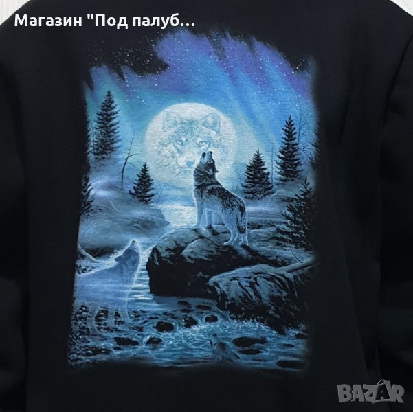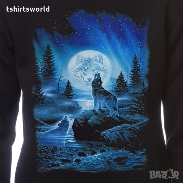 Нов мъжки суичър с дигитален печат Вълк, пълнолуние, Серия вълци