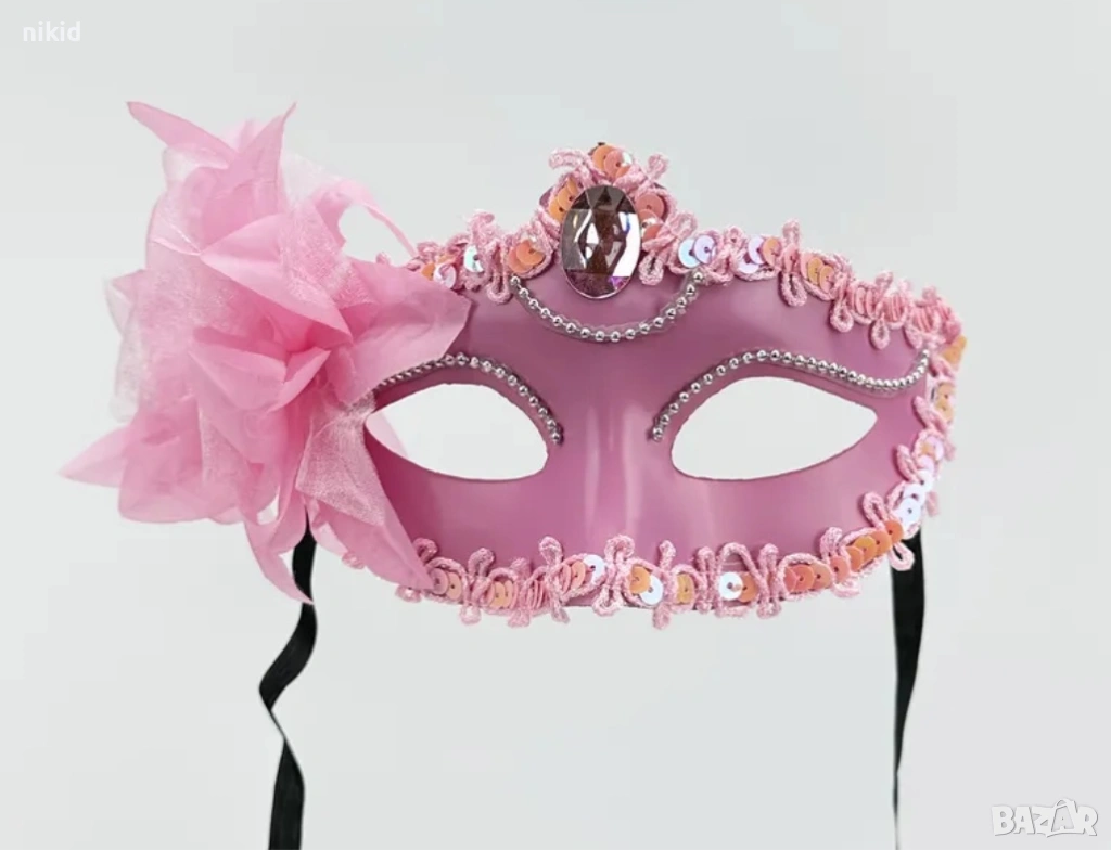 черна червена розова твърда Домино маска с пандела за лице очи карнавал парти → Обява 30183719