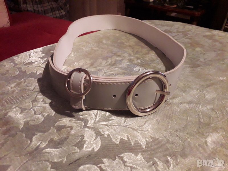 Дамски колан, светлосив цвят, украсен с допълнителна токичка, размер общо дължина 103 см /като дупките са между 80 и 90 см/, ширина 3,5 см. Отговарям на съобщения тук, изпращам с куриер с отстъпка, преглед и тест, или лично предаване в София.