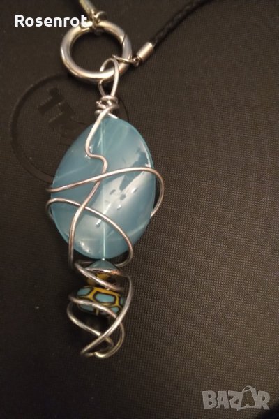 Колието е изцяло ръчна поръчково изработка със каишка от естествена кожа