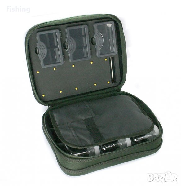 Качествена и интересно проектирана твърда чанта, предназначена за нуждите на шаранджиите, но и на други риболовци. В горната част (капак) има три малки пластмасови кутии с прозрачни капаци, предназначени за съхранение на различни дребни неща, а освен това има и (под кутията) място за съхранение на различни акости, направени от твърд гъбен материал, прикрепен към капака. В долната част на чантата има цели 9 малки бурканчета, изработени от прозрачна пластмаса с винтови капачки. Съдържанието на горната и долната част са отделени едно от друго с подвижна преграда. Тази чанта също има капак с цип и дръжка за носене с удобна гъба.