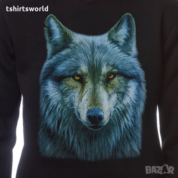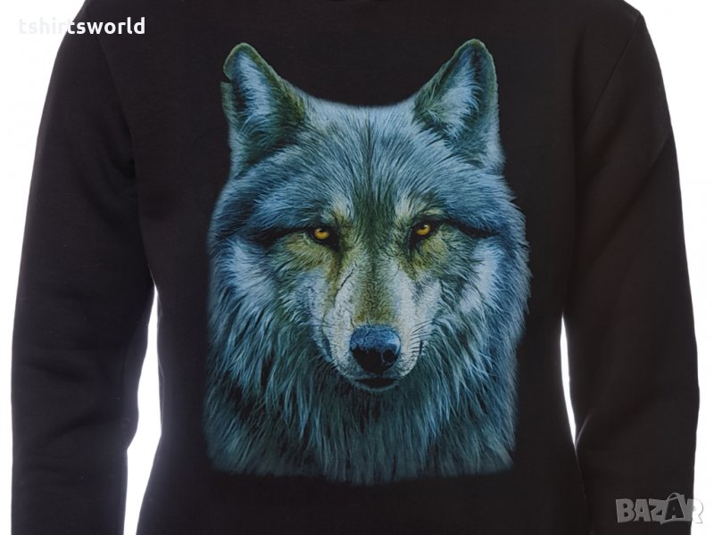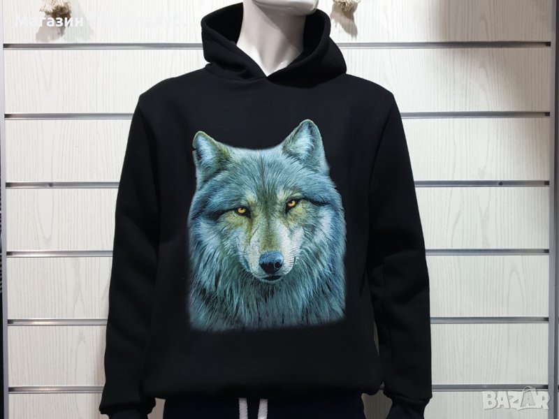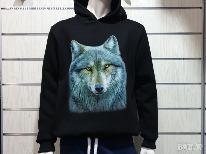 с качулка, две джобчета и дигитален печат Вълк, Серия вълци. Произведен в България под марката PRINTEX от висококачествен 100% памук - триконечна пенирана вата с кардировка, което го прави изключително топъл и желан от нашите дългогодишни клиенти. Моделът е подходящ за пролетния и есенно-зимният сезон, има ластични маншети на китките и ханша, запазващи топлината. Разполага с мека подплата и два отворени джоба в страни. Свободната кройка го прави под