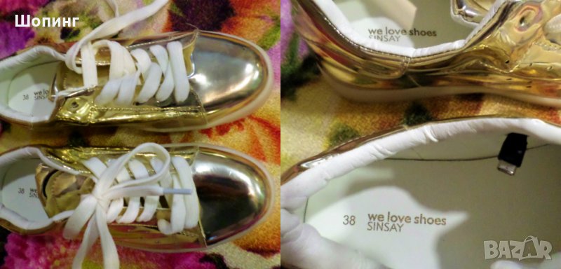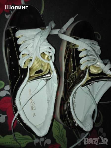 НОВО! №38 (24 см). Златисти металик обувки, много красиви, удобни и ефектни, дори и да не пуснете светлините, а вечер ще привличате вниманието.