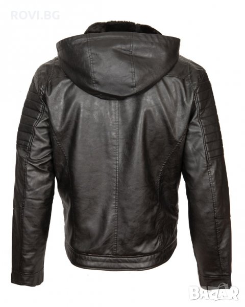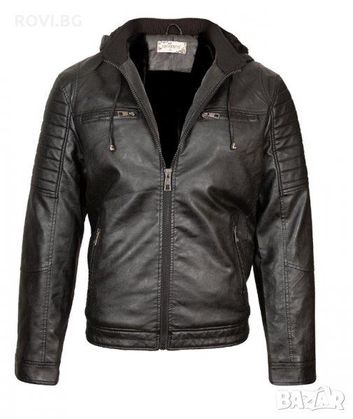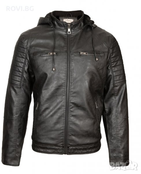 Мъжко яке от висококачествена еко кожа с каракул. Якето е много топло и подходящо за есенно-зимния сезон. Разполага с качулка, която може да се сваля и с два външни джоба с цип и един вътрешен джоб.