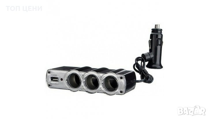 Троен разклонител за запалка за кола и USB, снимка 1 - Аксесоари и консумативи - 30208372 Троен разклонител за запалка за кола и USB, снимка 2 - Аксесоари и консумативи - 30208372 1/2