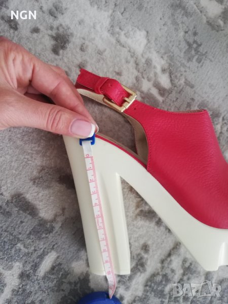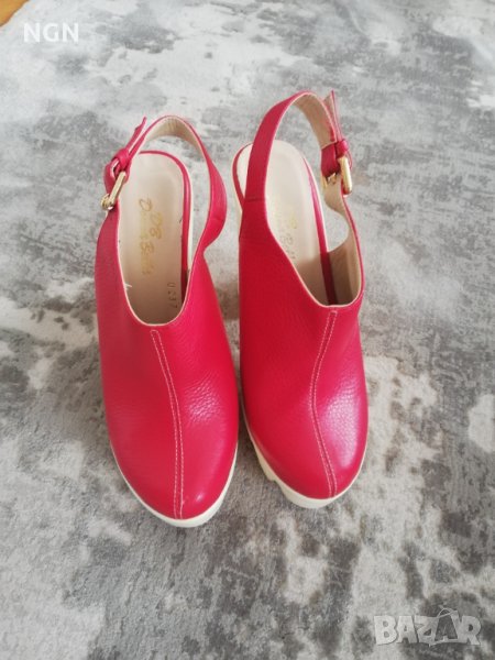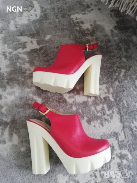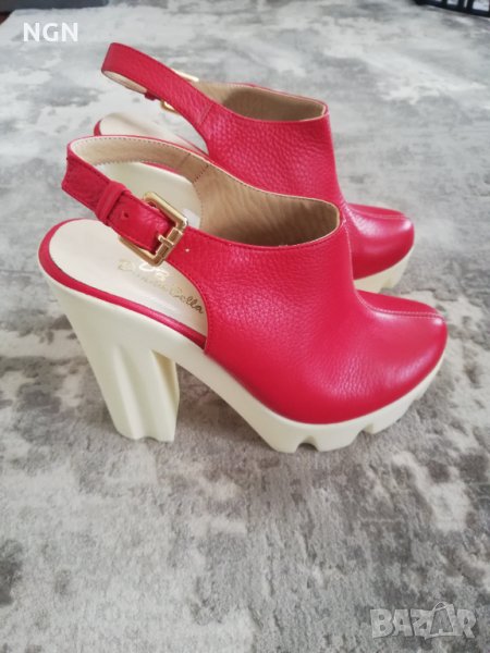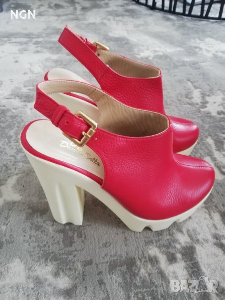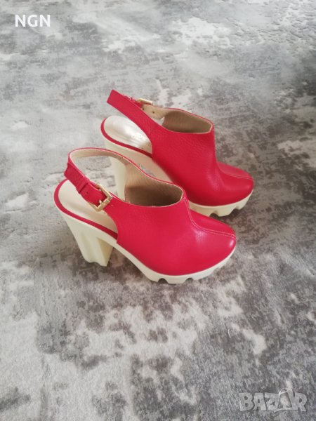 Иновативен модел дамски сандали на висок ток и удобна платформа. Чисто нови без забележки. Размер 37 номер с дължина на стрелката 23 см. Супер атрактивен и иновативен модел в червен цвят, изработени от естествена кожа. Промоционална цена само 39.00 лева.