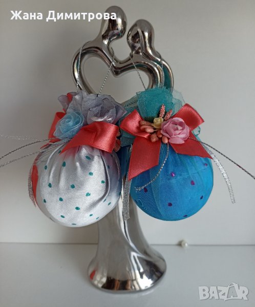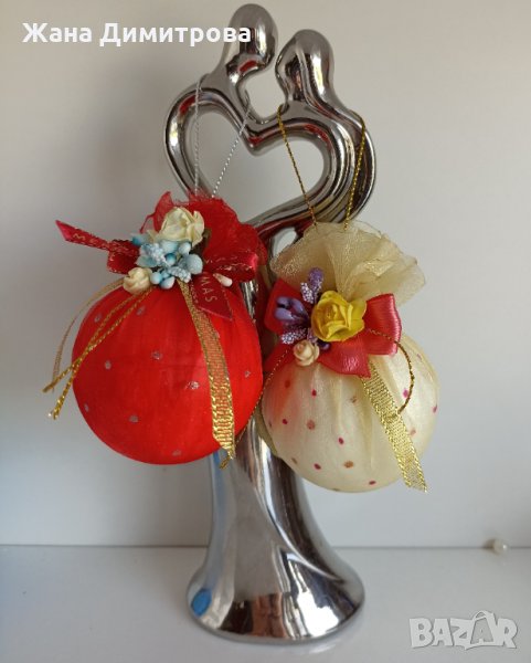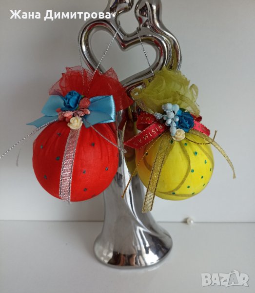 Ръчно изработени коледни топки от стиропор, органза и украса. Диаметър на топка 6 см. 6 лв. за брой. Плащане с Револют или банков път.