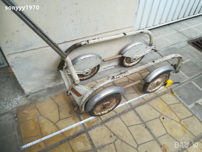 70х31х31см-антика-маркова метална ретро сгъваема количка-стара френска-за колекция декор ползване-алуминиеви калници и меко окачване на всяко колело поотделно-сгъва се и се носи с една ръка-пращаме със спиди или еконт с преглед и тест след превод на капаро за куриерската услуга поради зачестили некоректни потребители-поръчки само тук в саита! по телефона и със смс не! краини цени! бартери не правиме! ПАРИ НЕ ВРЪЩАМЕ! всеки ден нови неща-още 2-3 наши обяви тук