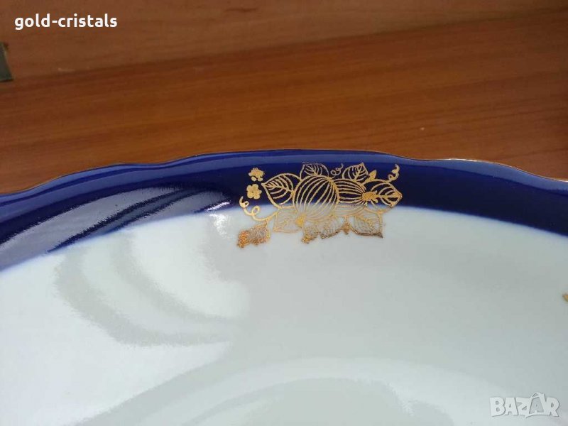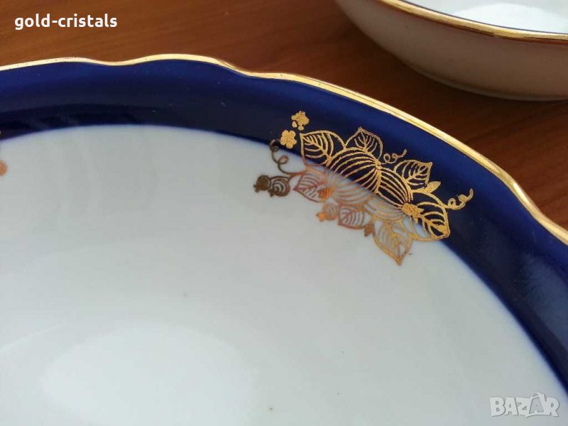 Руски порцелан дулево купа кобалт 1бр -120лв и позлата златен кант маркирана ретро арт декор винтидж колекция стара съветска ссср чинии дълбоки 6бр-450лв стари старинни антикварни предмети обзавеждане за дома и семейството подходящи за подарък за ценители и колекционери