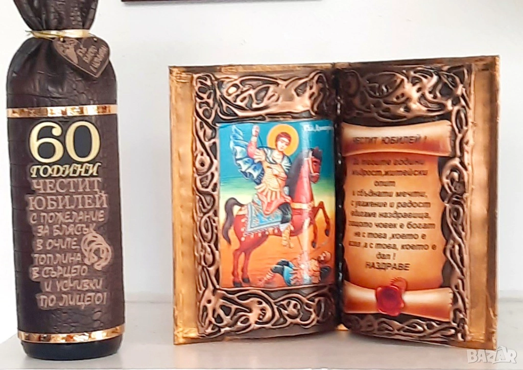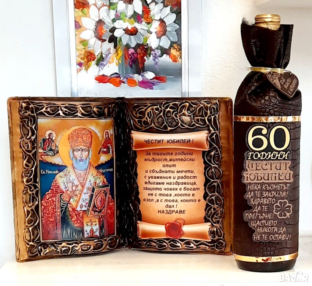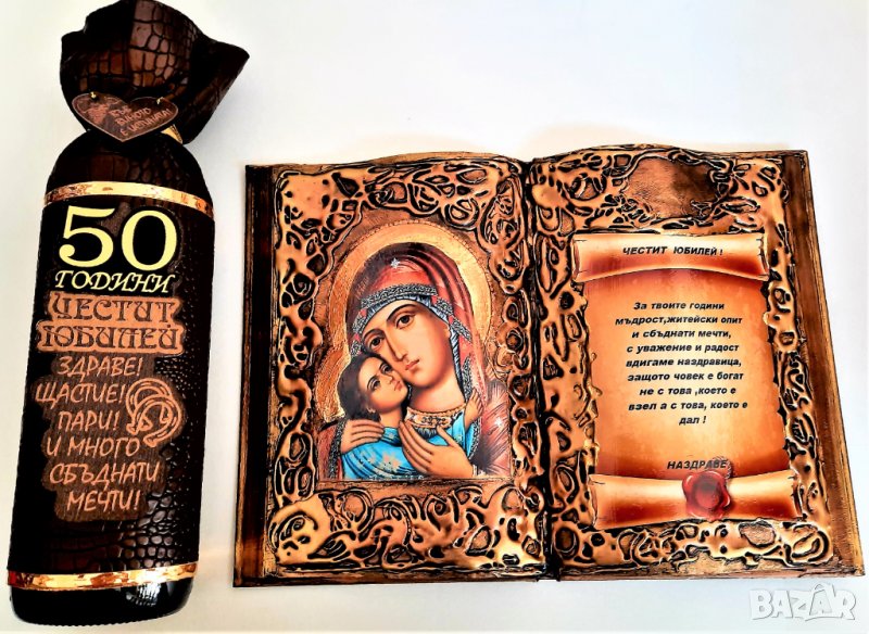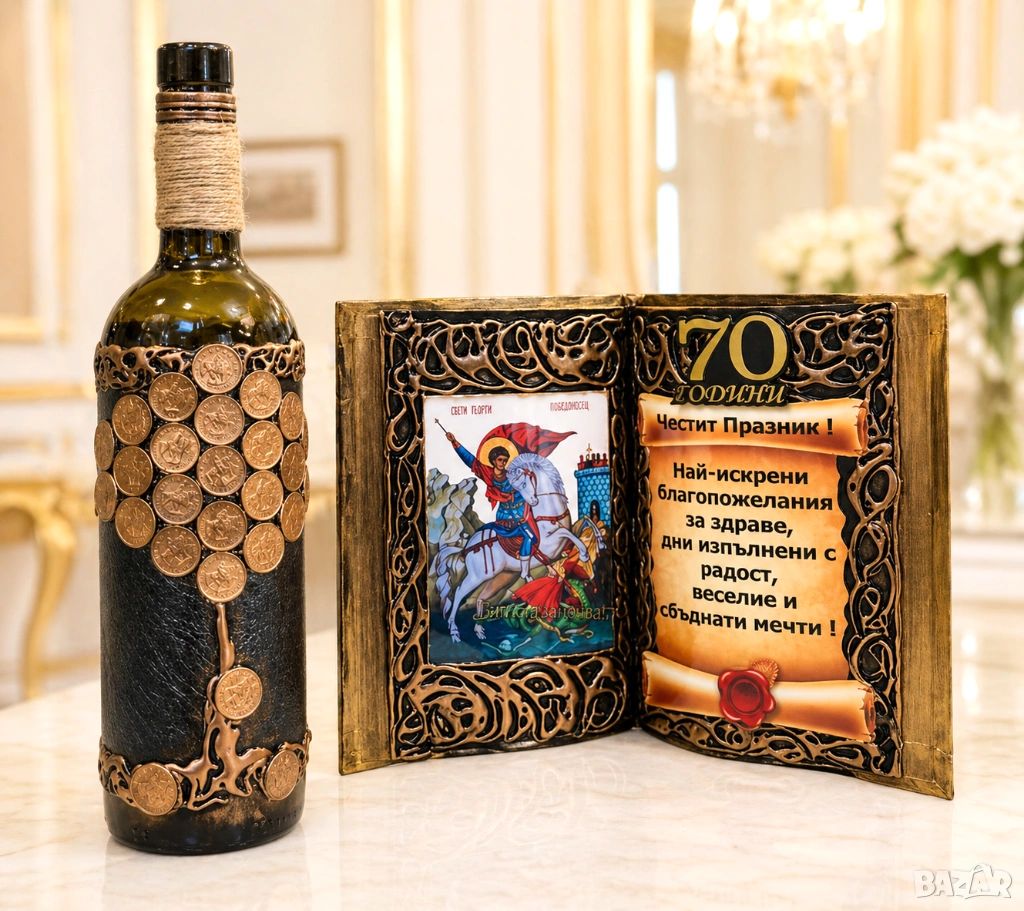 Може да допълните книгата с декорирана бутилка за юбилей.