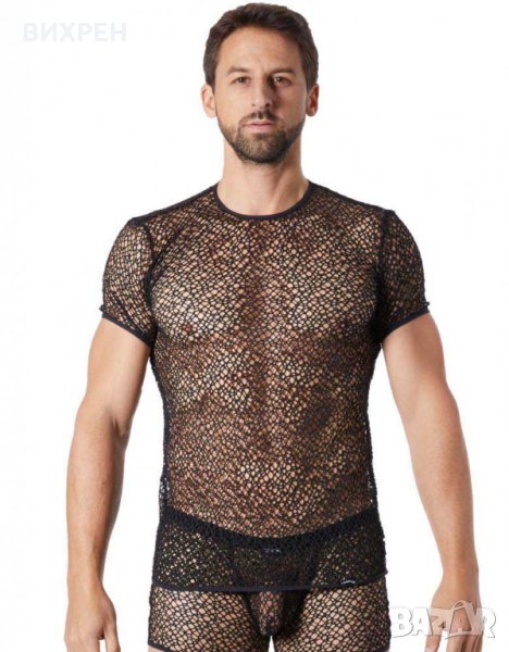 Мрежеста мъжки тениска, марка Lookme,събуждаща еротични желания! Материя - 80% - полиамид, 20% - еластан. Размери М и L. Износ за Франция. Moже перфектно да се съчетае с някои от еротичните модели боксерки и стрингове.