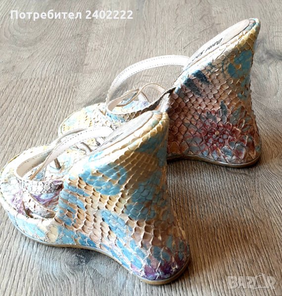 Летни сандали от естествена змийска кожа на платформа → Обява 30220905
