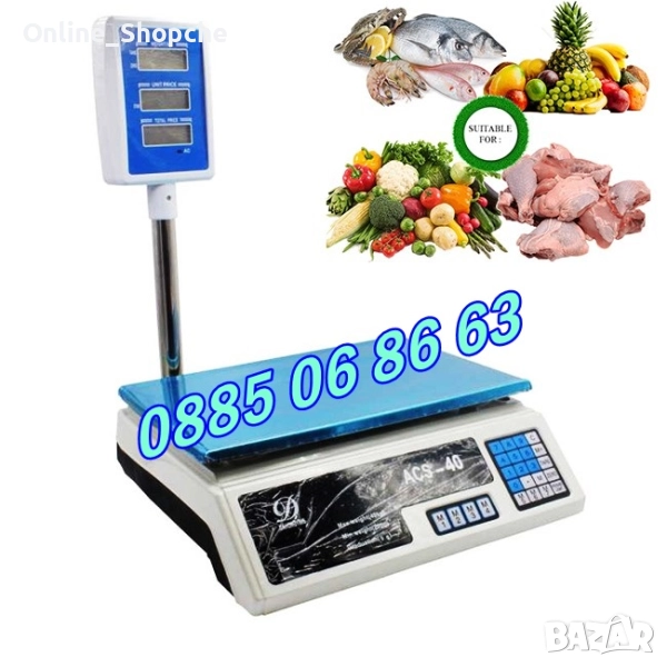 - до 100 кг - размер на платформата 30см x 40см = 75 лв. с два дисплея