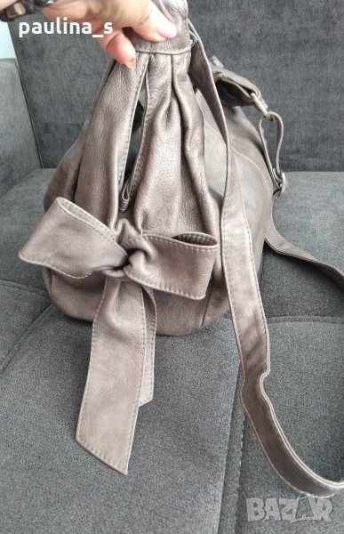 чанта от естествена кожа - телешки бокс. Цената е крайна 105,99лв / 53 евро. Кожата е дебела и здрава, мека и еластична. Моделът е за през тялото с голяма панделка в едната страна. Има две големи отделения, среден и вътрешен джобове с цип. Побира всичко необходимо. Бутикова селекция, за ценителки! Екранната снимка е от сайта, където е купена!