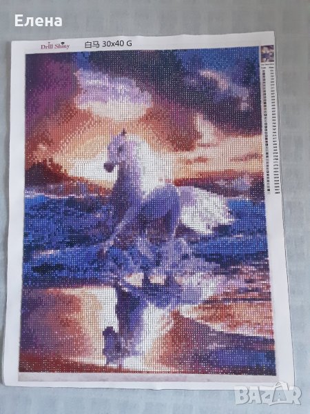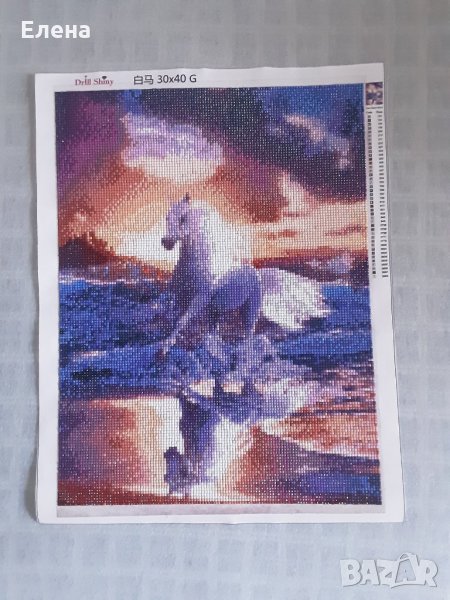 Ръчно изработен диамантен гоблен - бял кон размер 30/40 см без рамка, 40/50 см. в рамка.