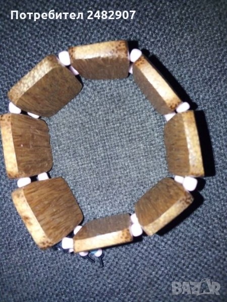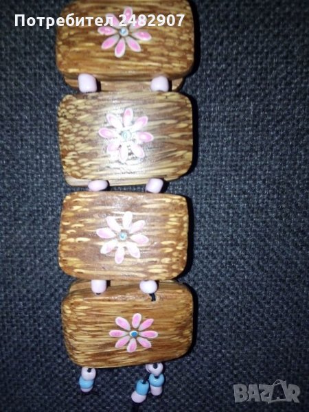 Стара еластична гривна от дърво и мъниста, с рисувани елементи. Ширина - около 3 см