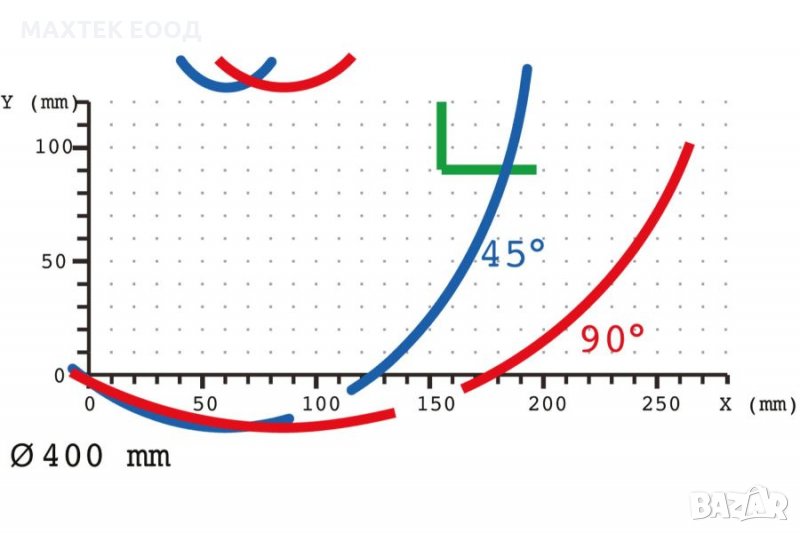 • Диапазон на рязане + 45 ° / -45 ° и междинни градуси.