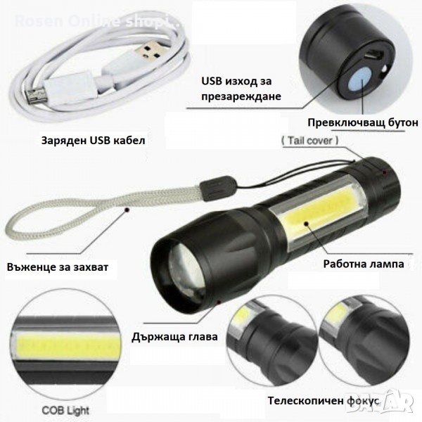 МОЩНО ДЖОБНО LED ФЕНЕРЧЕ 5В1 С ФОКУС, 3 СТЕПЕНИ И АКУМУЛАТОРНА БАТЕРИЯ,Промо цена!