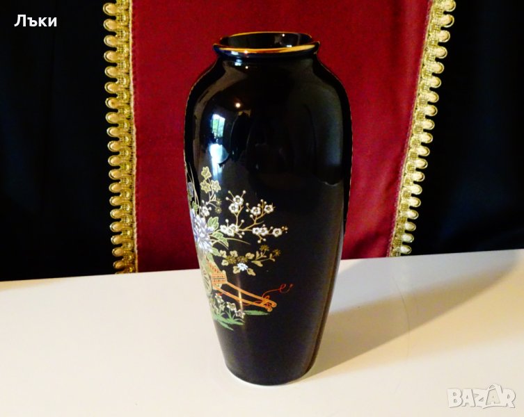 Ваза японски порцелан,ръчно рисувана с 24 карата злато и