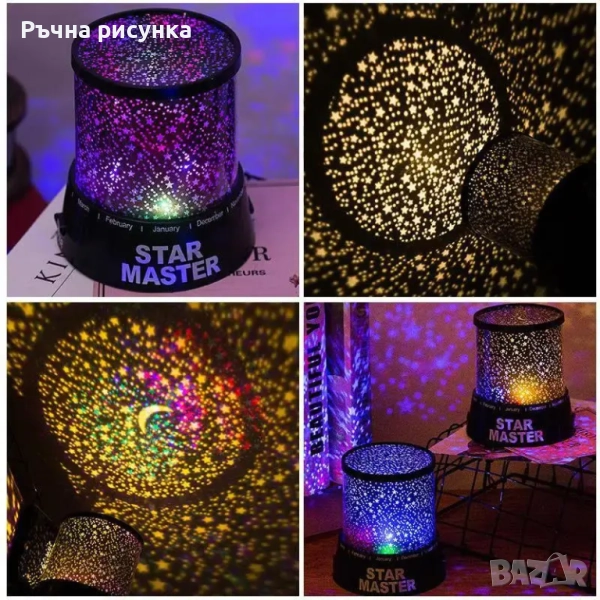 4 и 5 снимка-Нощна лампа - проектор с Луна и Звезди /на батерии или с USB кабел/.