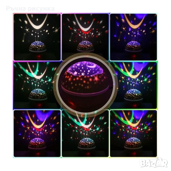 Нощна лампа - проектор на звездното небе, създава мистичен светлинен ефект, който прилича на нощното небе и осигурява релаксираща, успокояваща атмосфера. Лека и компактна с опростен дизай.